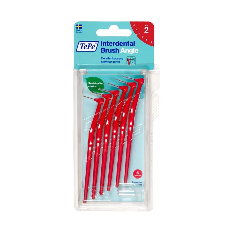 فروشگاه اینترنتی مسواکالا با پایبندی به اصول حرفه ای و ارائه کالاهای دارای اصالت و مجوزهای بهداشتی، مسواک بین دندانی مخصوص بزرگسالان TePe Angle سایز ۲ (قرمز) را در بسته بندی های ۶ عددی عرضه می نماید. چنانچه دندانپزشک شما استفاده از این سایز را برای فواصل دندانی تان مناسب تشخیص داده است، می توانید جهت تکمیل رژیم بهداشتی خود و پیشگیری مؤثر از بیماری های لثه، نسبت به تهیه این محصول اقدام فرمایید.