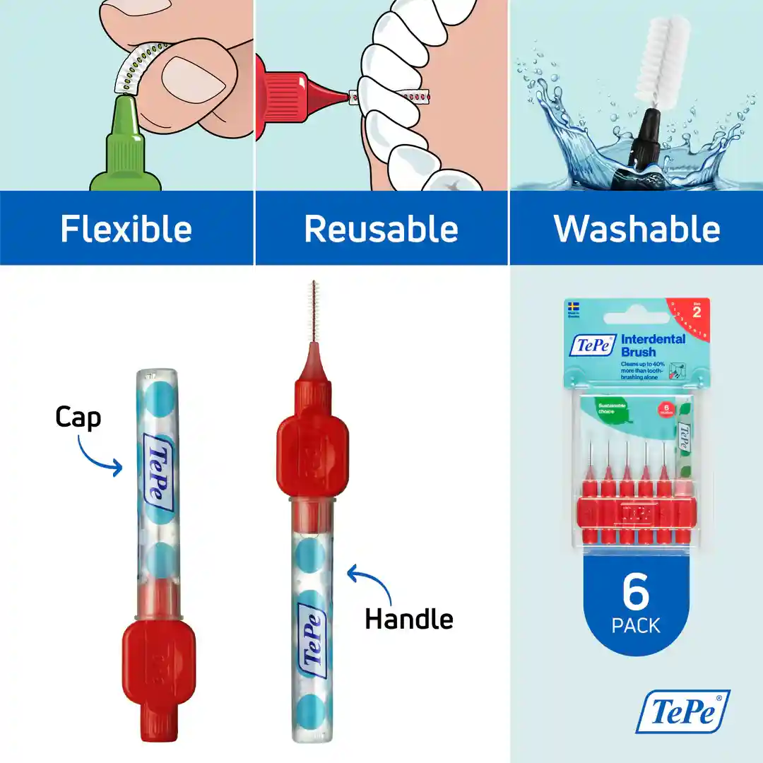 مسواک بین دندانی تپه (TePe) مدل Original سایز ۲ (رنگ قرمز) – بسته ۶ عددی