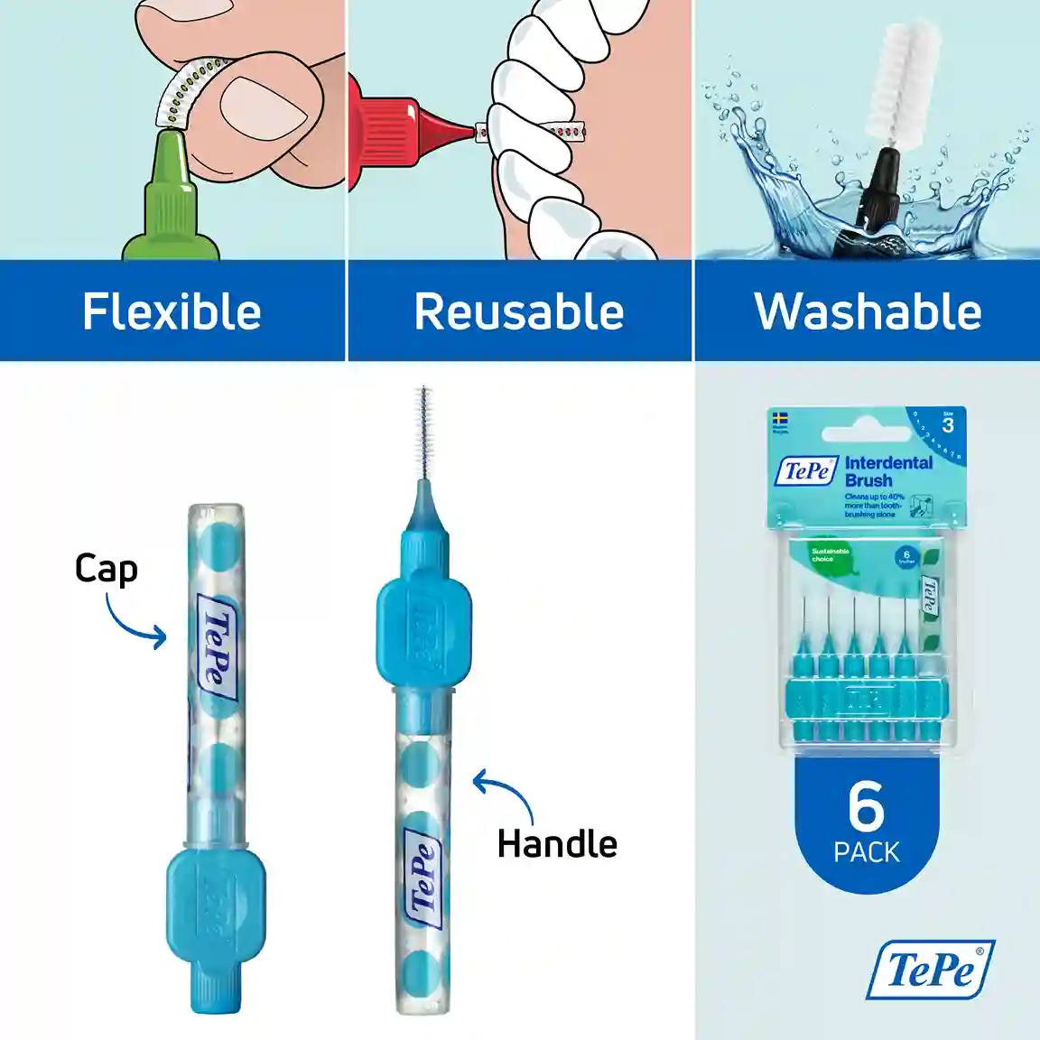 مسواک بین دندانی تپه (TePe) مدل Original سایز ۳ (رنگ آبی) – بسته ۶ عددی