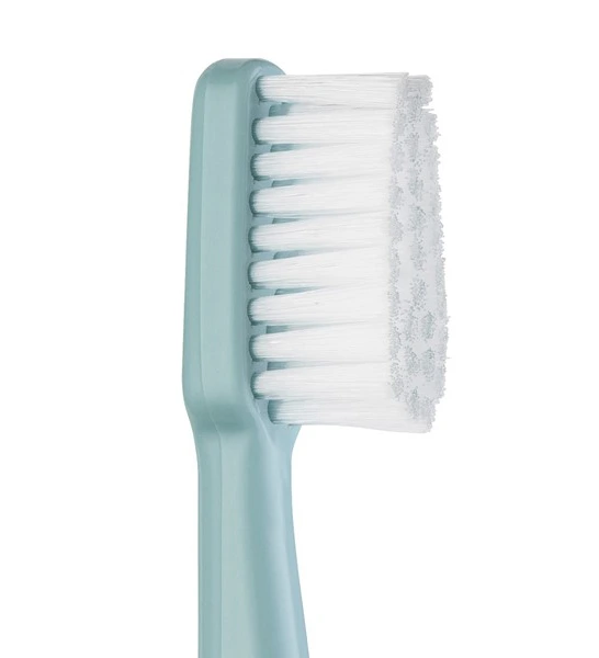 - الیاف نرم و ایمن (برس نرم): الیاف این مسواک در انتها کاملاً گرد شده اند (End-rounded) تا ضمن انجام پاکسازی مؤثر، از هرگونه آسیب به مینای دندان های شیری و لثه های حساس کودک جلوگیری شود. این ویژگی به طور مستقیم به حفظ سلامت لثه کمک مینماید.