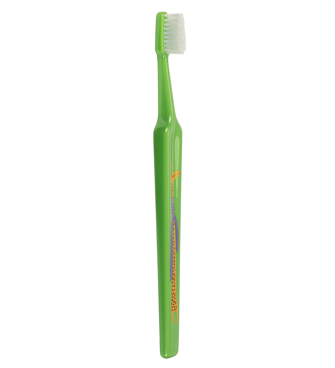 - طراحی ارگونومیک و کاربردی: مسواک کودک ته په دارای یک سری کوچک و مخروطی شکل است که دسترسی به نواحی دور از دسترس دهان کودک، به ویژه دندانهای عقبی، را تسهیل می کند. دسته مسواک به گونه ای طراحی شده که استفاده از آن هم برای کودک و هم برای والدین (جهت کمک به مسواک زدن) راحت باشد.