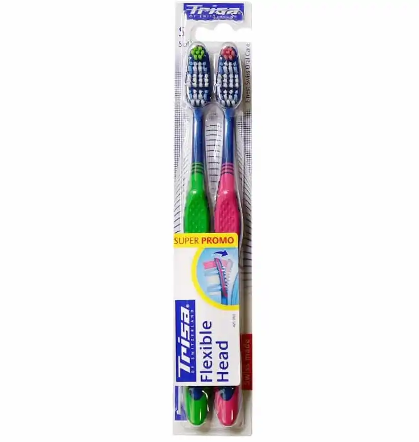 خرید مسواک دو قلوی فلکسیبل هد با برس نرم Trisa از مسواکالا