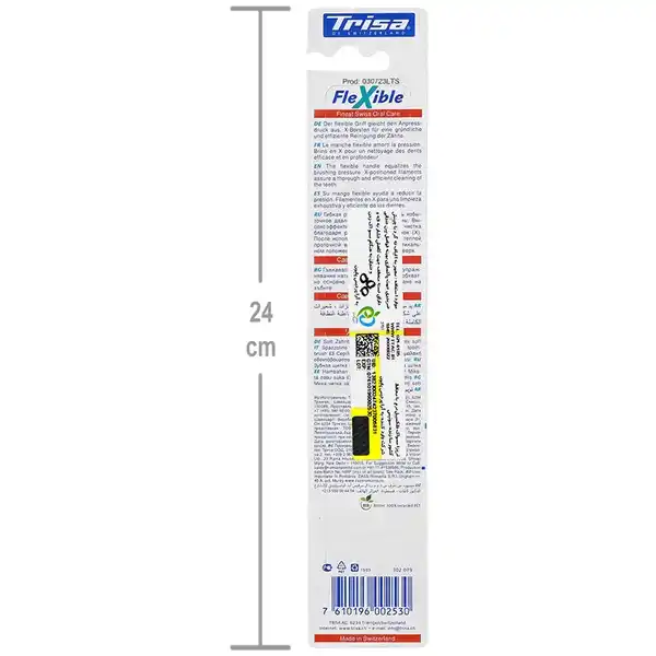 مسواک فلکسیبل تریزا اصل ساخت سوییس با برس نرم و الیاف ضربدری، ضامن سلامت دهان و دندان و مناسب دندان های حساس و افرادی که به سلامت مینای دندان خد اهمیت میدهند، پاکسازی کامل دندانها و فضای بین دندانی را به صورت ملایم انجام میدهد.