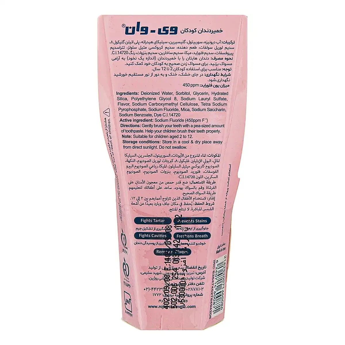 خمیر دندان وی وان کودک دخترانه با طعم توتفرنگی، با فرمولاسیونی ملایم و مخصوص دندانهای شیری، راهکاری مطمئن برای بهداشت دهان کودکان است. این محصول حاوی فلوراید فعال و ترکیبات ایمن مانند سیلیکای هیدراته و تتراسدیم پیروفسفات است که به حذف پلاکهای میکروبی، پیشگیری از تشکیل جرم و محافظت از مینای دندان کمک میکند. فرمول ملایم و سایندگی پایین این خمیر دندان، تجربهای راحت و ایمن برای استفاده روزانه کودکان فراهم میآورد و با طعم محبوب توتفرنگی، حس خوشایند و انگیزه بیشتری برای مسواک زدن ایجاد میکند.