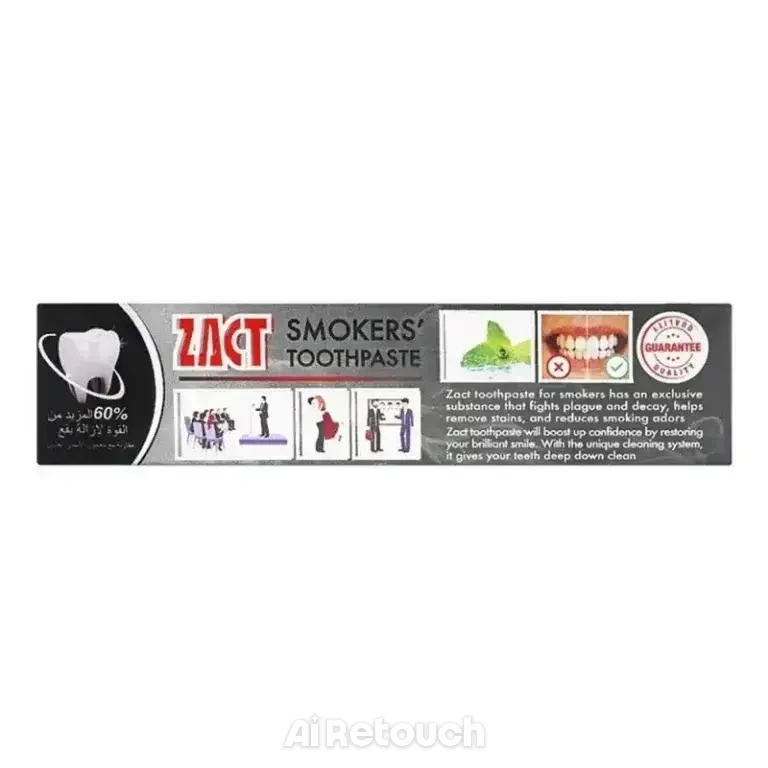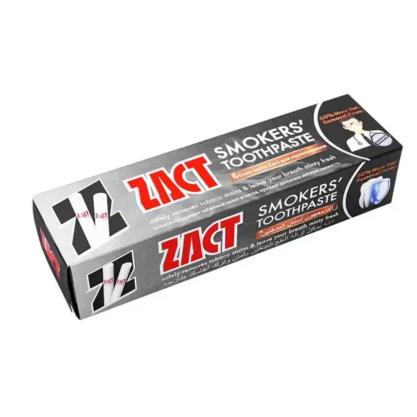اگر سیگاری هستید و از زردی دندانها یا بوی بد دهان خستهاید، خمیر دندان Zact Smokers با سفیدکنندگی بیشتر از خمیر دندانهای معمولی، لکههای نیکوتین را پاک میکند.